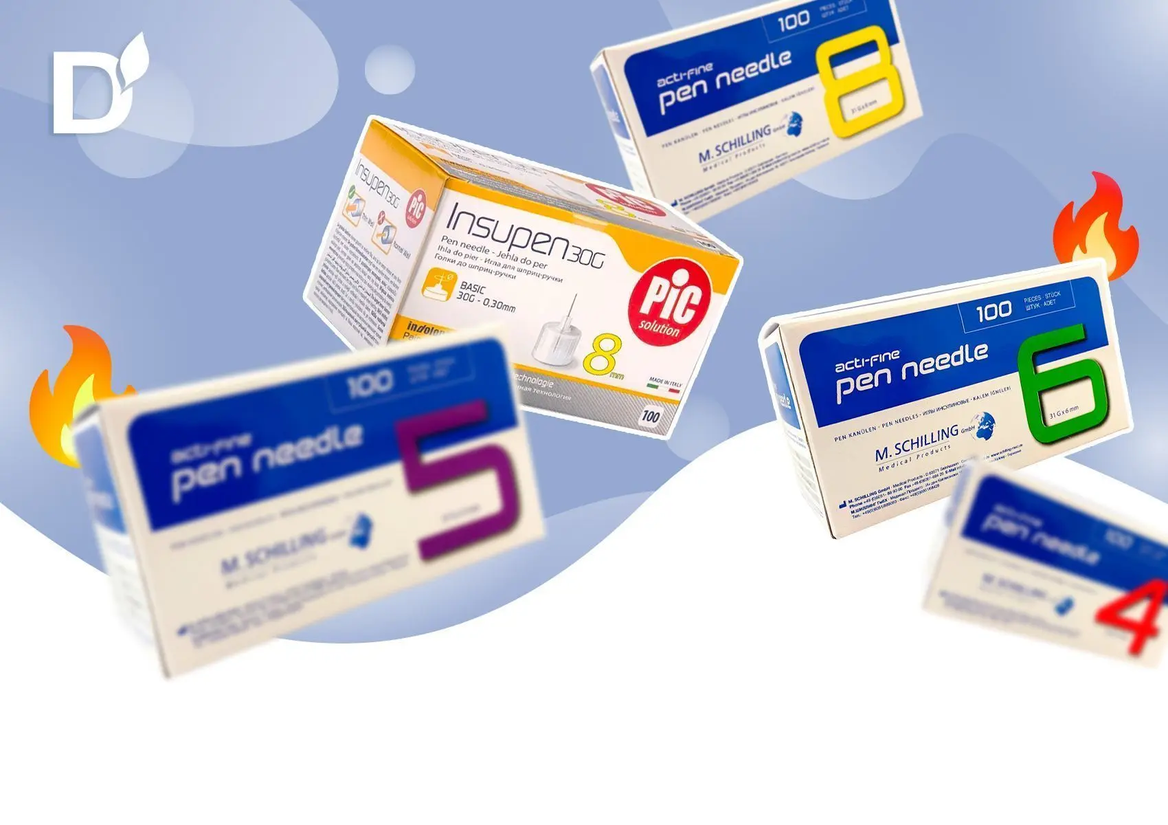 Пополняйте запасы качественными иглами для шприц-ручек, пока это максимально выгодно! Цены: от 330 рублей за упаковку из 100 игл.