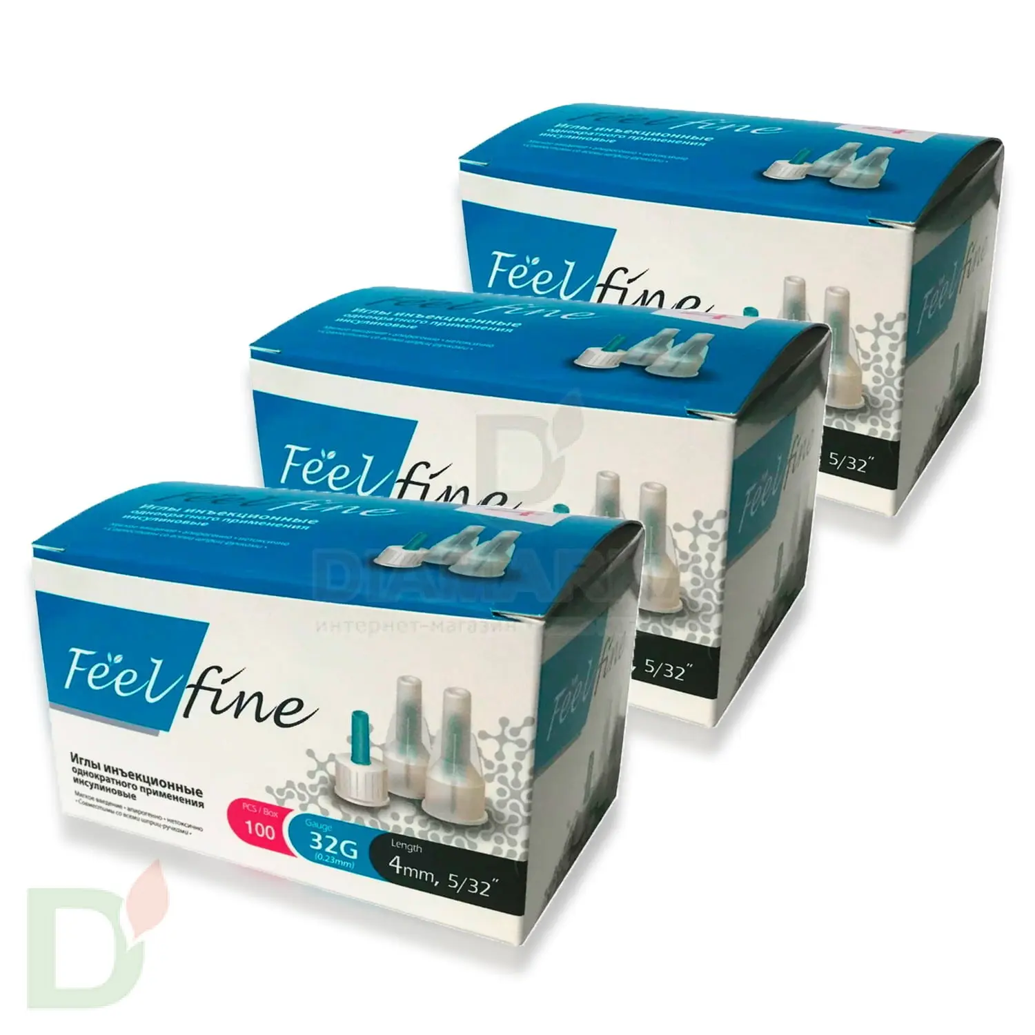 Иглы ФилФайн / FeelFine 33G для шприц-ручек, ультра-тонкие, длина 4 мм, 100 шт.