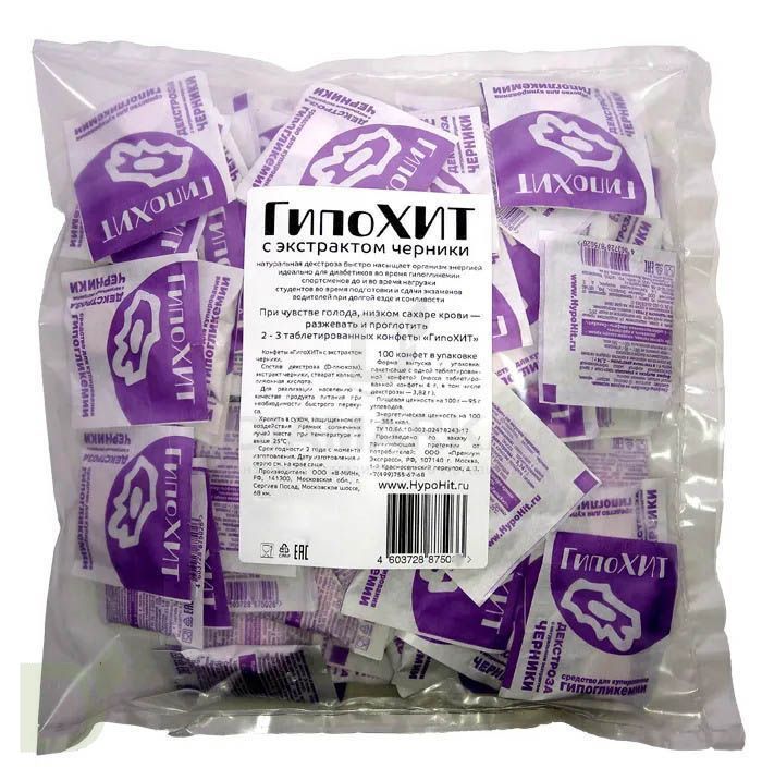 ГипоХит ЧЕРНИКА, 100 конфет - новинка от производителя DEXTRO4 и Быстрозы