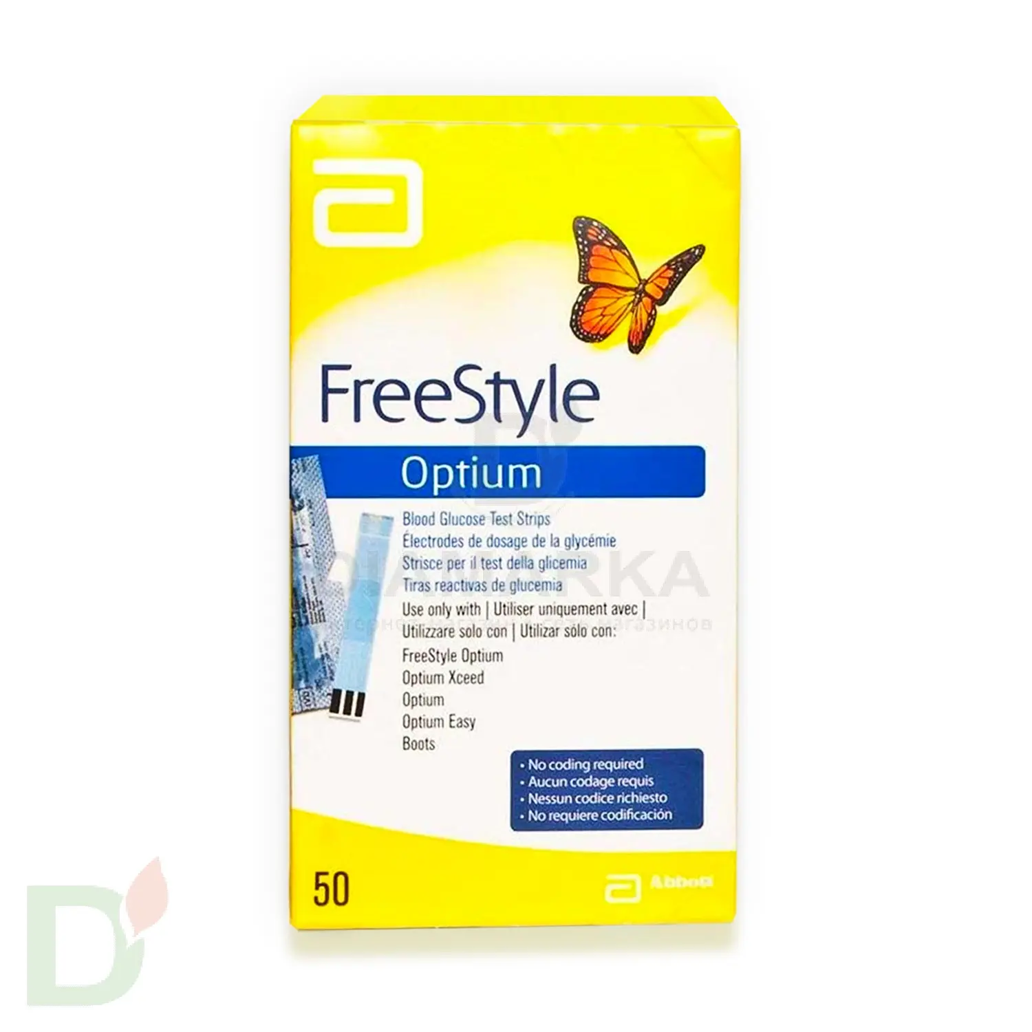 Тест-полоски ФриСтайл Оптиум (FreeStyle Optium) №50 используются с глюкометром Optium Xceed. В одной упаковке тест-полосок №50 находится 50 тест-полосок.