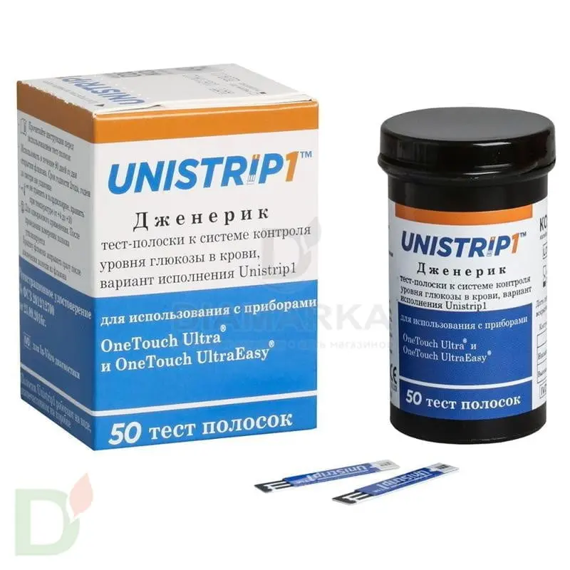 <h2>Вы используете глюкометр OneTouch Ultra или UltraEasy?</h2> Хотели  бы тратить на тесты к любимому прибору меньше? Существенно меньше... Попробуйте тест-полоски дженерики Unistrip.<br> <br> <h3>Тест-полоски дженерики Unistrip от Диаконт</h3> Юнистрип — продукт компании Диаконт, разработанный специально для использования с глюкометрами ВанТач Ультра и ВанТач УльтраИзи. Бюджетный аналог - это вовсе не худший выбор. А наоборот: очень продуманный и взвешенный. Такие тест-полоски соответствуют всем современным стандартам и критериям качества и позволяют получить точный результат за считанные секунды!<br> <h3>Как экономить на тест-полосках не в ущерб здоровью?</h3> Качественная, полноценная и здоровая жизнь с диабетом возможна. И для этого важно уметь управлять своим диагнозом. Одно из неотъемлемых слагаемых компенсации - замеры уровня глюкозы крови. Частые и регулярные. Опытные диабетики подтвердят, что иногда приходится проводить по 10-12-15 и более замеров на дню. Но так ведь на тест-полосках и разориться можно...<br> <br> Вы не разоритесь, если будете использовать расходники-дженерики. По качеству они ничуть не уступают оригинальной продукции, а вот по цене выигрывают в 2-3 раза. Благодаря этому можно проводить замеры так часто, как нужно и при этом не тратить кругленькие суммы на тест-полоски!<br> <br> <div> <b>50 тест-полосок в упаковке</b> </div> <div> <b><br> </b> </div> <div> <b>Производитель: </b>ОК Биотек (Тайвань/Россия)<b><br> </b> </div> <br>