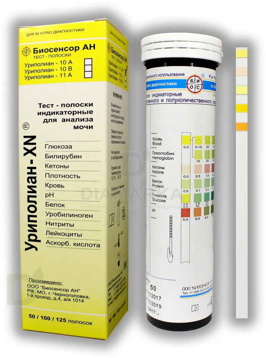 Тест-полоски визуальные Уриполиан-XN 5А №50 для определения биохимических параметров в моче