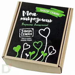 <h2>Что такое микрозелень</h2> Микрозелень - маленькие проростки семян. Крохотные побеги обладают высокой пищевой ценностью и содержат в себе в разы больше питательных веществ по сравнению со взрослыми растениями.<br> <br> Микрозелень используется в приготовлении блюд, ею украшают салаты, горячие блюда и тосты, делают из маленьких ростков соки и смузи.<br> <h2>Польза микрозелени</h2> Микрозелень - источник:<br> <ul> <li>витаминов группы B (необходимы для нормального метаболизма, здоровья нервной системы)</li> <li> витамина А (отвечает за ночное зрение, здоровье кожи, волос, ногтей)</li> <li> витамина С (здоровье сосудов и продление молодости кожи)</li> <li> а также минералов: кальция, калия, магния, цинка</li> </ul> <h2>Рекомендации по употреблению микрозелени</h2> <ol> <li>Срезать микрозелень лучше в фазе 1-2 первых листьев, тк переросшие ростки теряют свою пищевую ценность.</li> <li> Промыть в проточной воде перед употреблением в пищу</li> <li> Сырые (термически НЕ обработанные) проростки сохраняют в себе максимум пользы!</li> </ol> <h2>Ешьте свежую зелень круглый год</h2> Для выращивания микрозелени всего-то и нужно:<br> <ul> <li><a href="https://diamarka.com/info/brands/zdorovya_klad/">проращиватель</a></li> <li> семена</li> <li> вода</li> </ul> <h2>Преимущества выращивания зелени с помощью проращивателя</h2> <ul> <li>быстро: от 5 до 7 дней до готовой к употреблении зелени</li> <li> просто: для выращивания зелени в проращивателе не трубуется особых умений и навыков</li> <li> гигиенично, тк не нужна земля/ субстраты/ грунт/ удобрения и тд</li> <li> проращиватель не займет много места и с легкостью поместится на любом подоконнике</li> </ul> <b>Семена в наборе:</b><br> <ol> <li>Кресс-салат</li> <li> Рукола</li> <li> Редис</li> </ol>