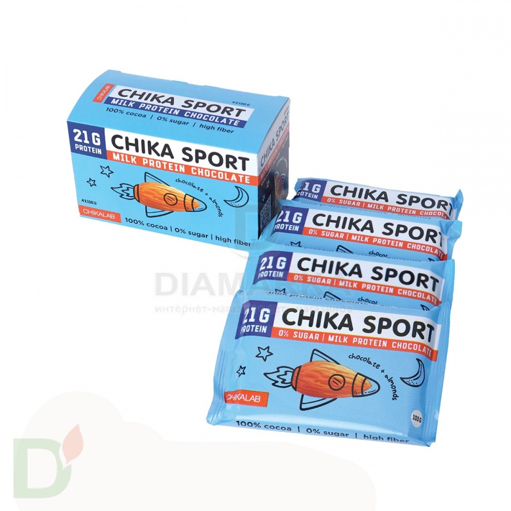 <h2>Цельные орехи, залитые молочным шоколадом</h2> Найти подобную плитку в наше время - редкость. Но производители ЧикаЛаб орехов не пожалели и на качестве не сэкономили. Поэтому получилось то, что получилось: нежнейший тающий шоколад с хрустящими цельными орешками. Оторваться от такого лакомства будет сложно!<br> <h2>Очень много орехов, минимум углеводов</h2> Вместо привычного дико калорийного и обладающего высоким ГИ сахара используется сукралоза. В ней 0 калорий и углеводов, а гликемический индекс также равен 0! НЕ обладает неприятным послевкусием.<br> Шоколад подходит для беременных, кормящих, диабетиков, детей и спортсменов.<br> <h2>20 грамм протеина на плитку</h2> Это вам не шутки! Даже пара долек шоколада смогут значительно разнообразить ваш рацион полезными жирами и ценным белком. А настроение после такого перекуса точно будет на высоте!<br> <h2>Состав шоколада с миндалем</h2> молочный шоколад (водорастворимые волокна кукурузы, какао масло, какао тёртое, молоко сухое цельное, концентрат сывороточного белка, эмульгатор (соевый лецитин), ароматизаторы натуральные, подсластитель (сукралоза)), миндаль. Молочный шоколад содержит общий сухой остаток какао не менее 33%, сухой обезжиренный остаток какао не менее 5%, сухой молочный остаток не менее 26%, молочный жир не менее 4%.<br> <br> <b>Может содержать незначительное количество фундука.</b><br> <br> Содержит натуральный шоколад, поэтому при нарушении температурных режимов возможна потеря формы и изменение внешнего вида продукции.<br> <h2>Калорийность шоколада без сахара</h2> В 100 граммах шоколада содержится:<br> <br> б - 20,8, ж - 41,5, у - 9,6<br> клетчатка - 20 грамм<br> 536 ккал